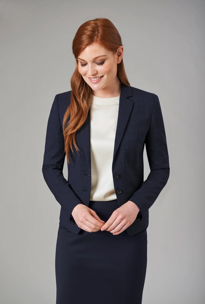 Short, slim fit 2 button jacket with cutaway front, slim notch lapel, front breast darts, jetted pockets, plain back, tailored back panels, 1 inside pocket