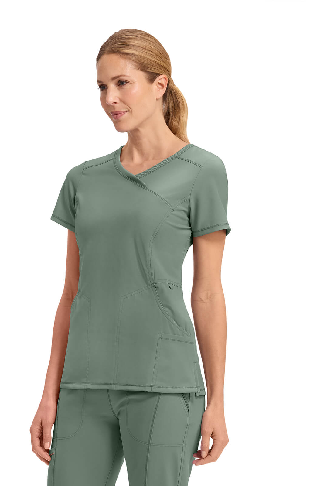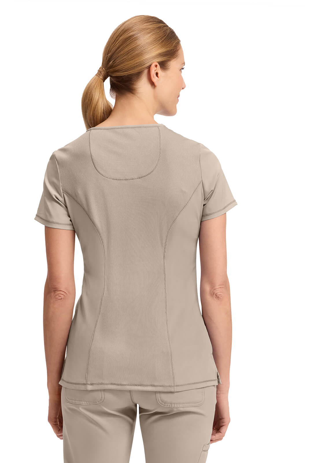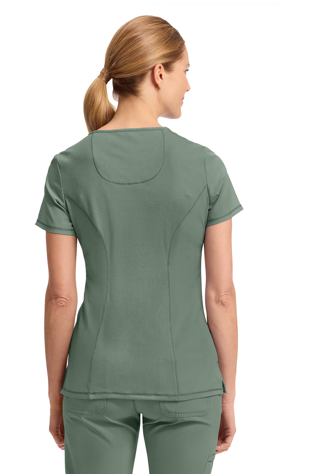 Stretch Rib Knit: The stretch rib knit at the center back panel of the top not only contributes to the slimming shape but also allows for extra movement and comfort, which is crucial for healthcare professionals who need to be agile during their shifts.