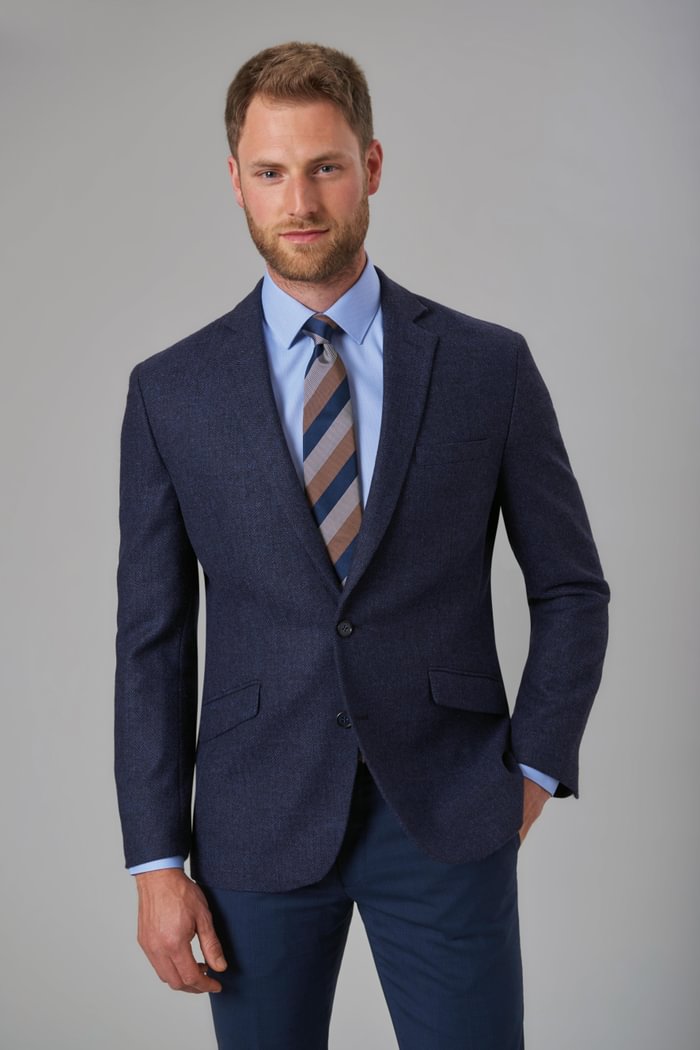 The blazer features a classic two-button closure, two front pockets and a chest pocket, and a back vent that ensures ease of movement and a clean, tailored fit.