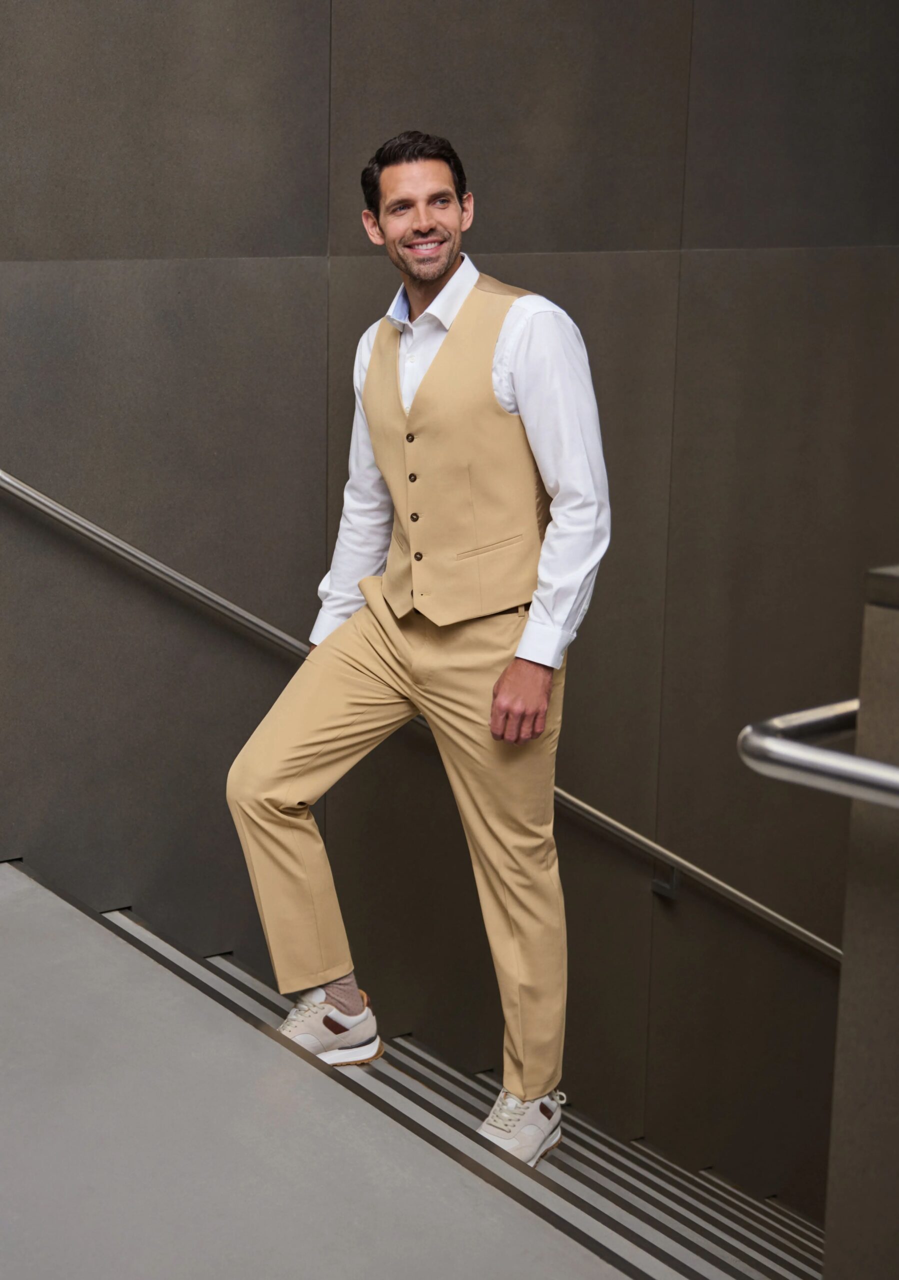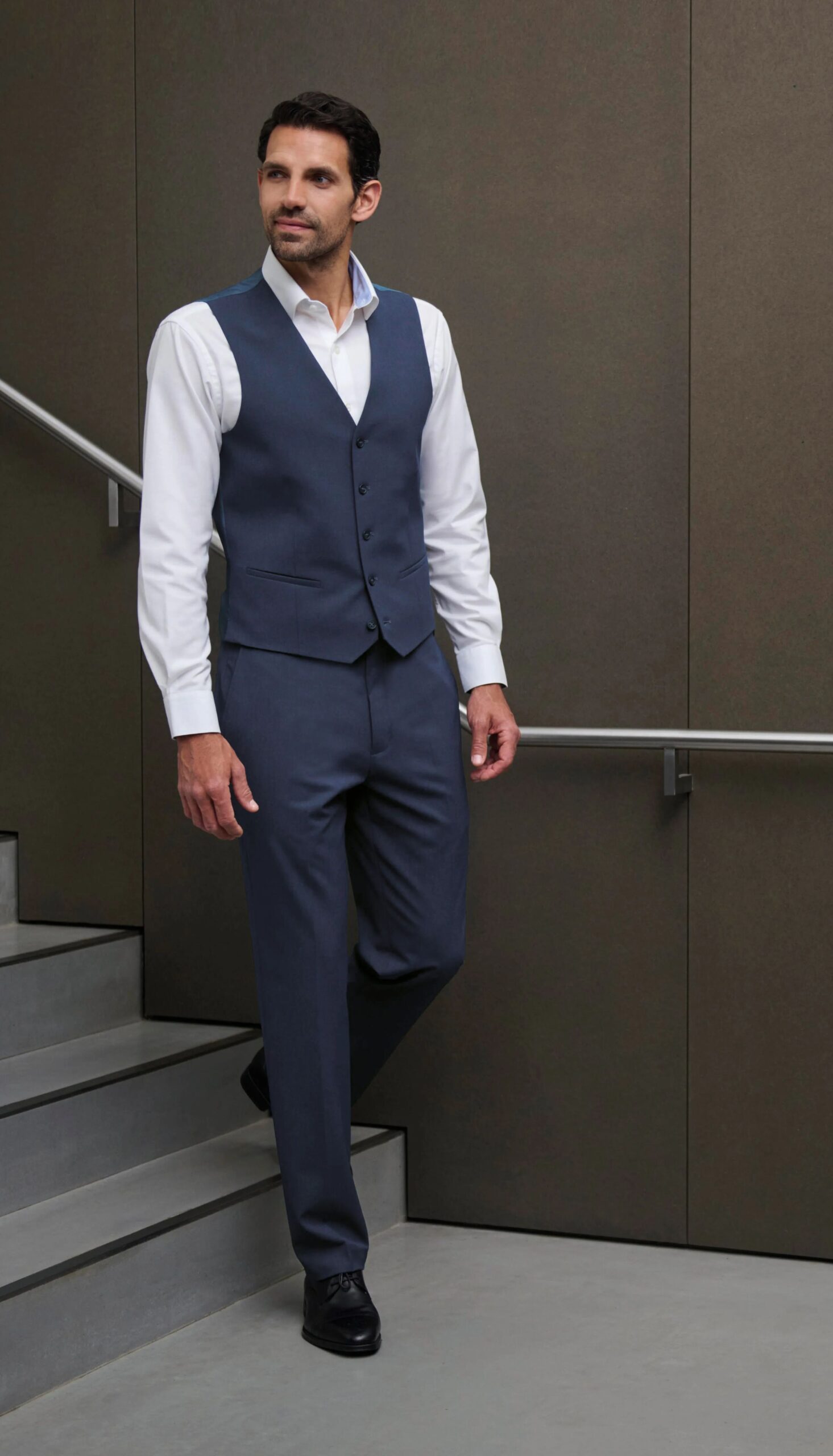 Kauden uutuus, miesten 5-napin liivi, hieman istuva leikkaus, sivutaskut, selkävuori ja solki, hieman joustavaa kangasta mukavuuden lisäämiseksi. Liivi on saatavana kahdessa trendikkäässä värissä.