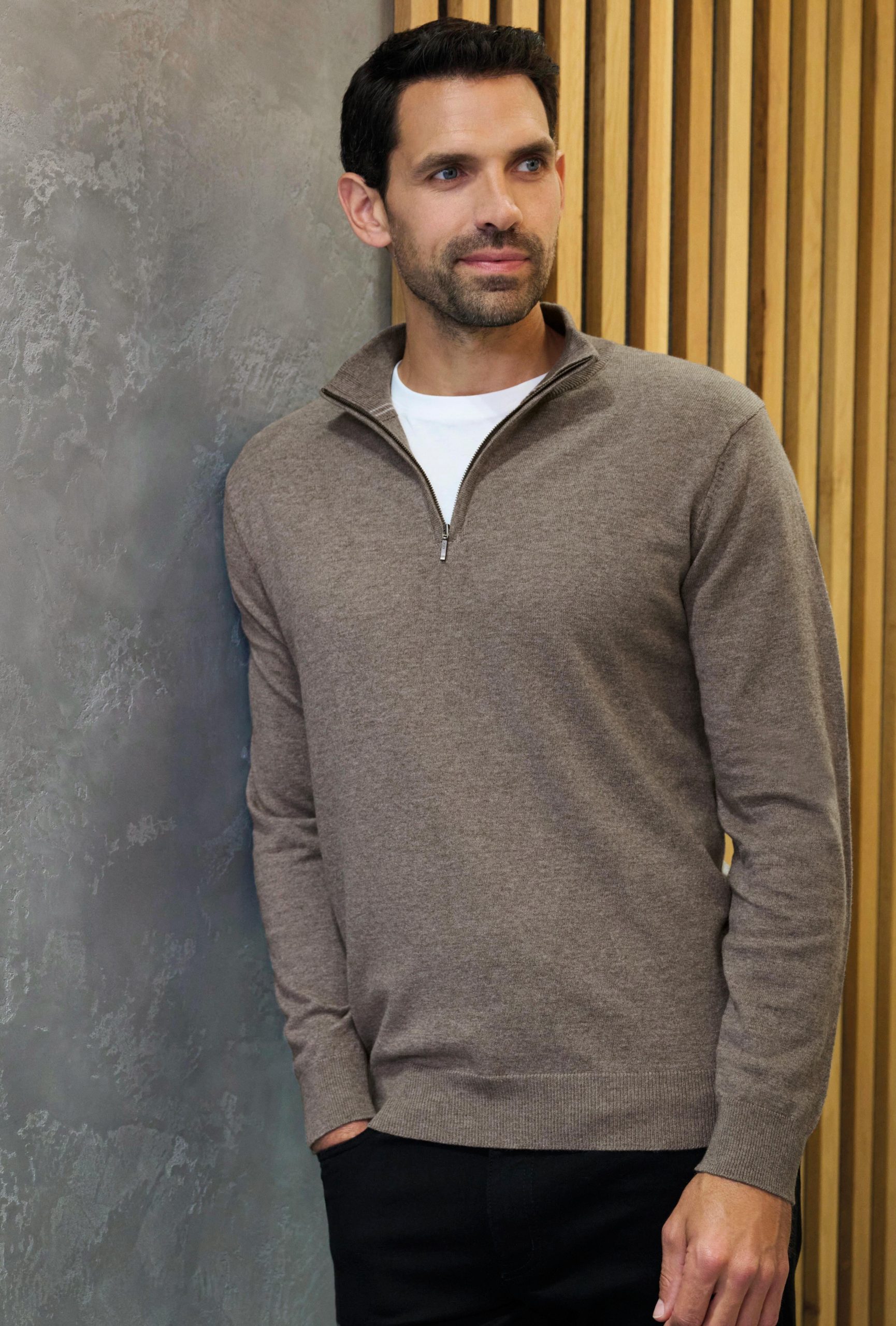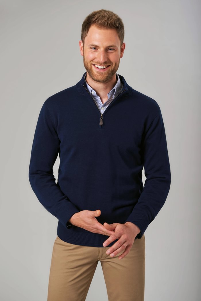 Tyylikäs puolivetoketjuinen merinovillapaita on täydellinen valinta toimistotyöskentelyyn. Hyvä vaihtoehto takille, helppohoitoinen ja näyttää hyvältä sekä T-paidan että tavallisen kauluspaidan päällä.