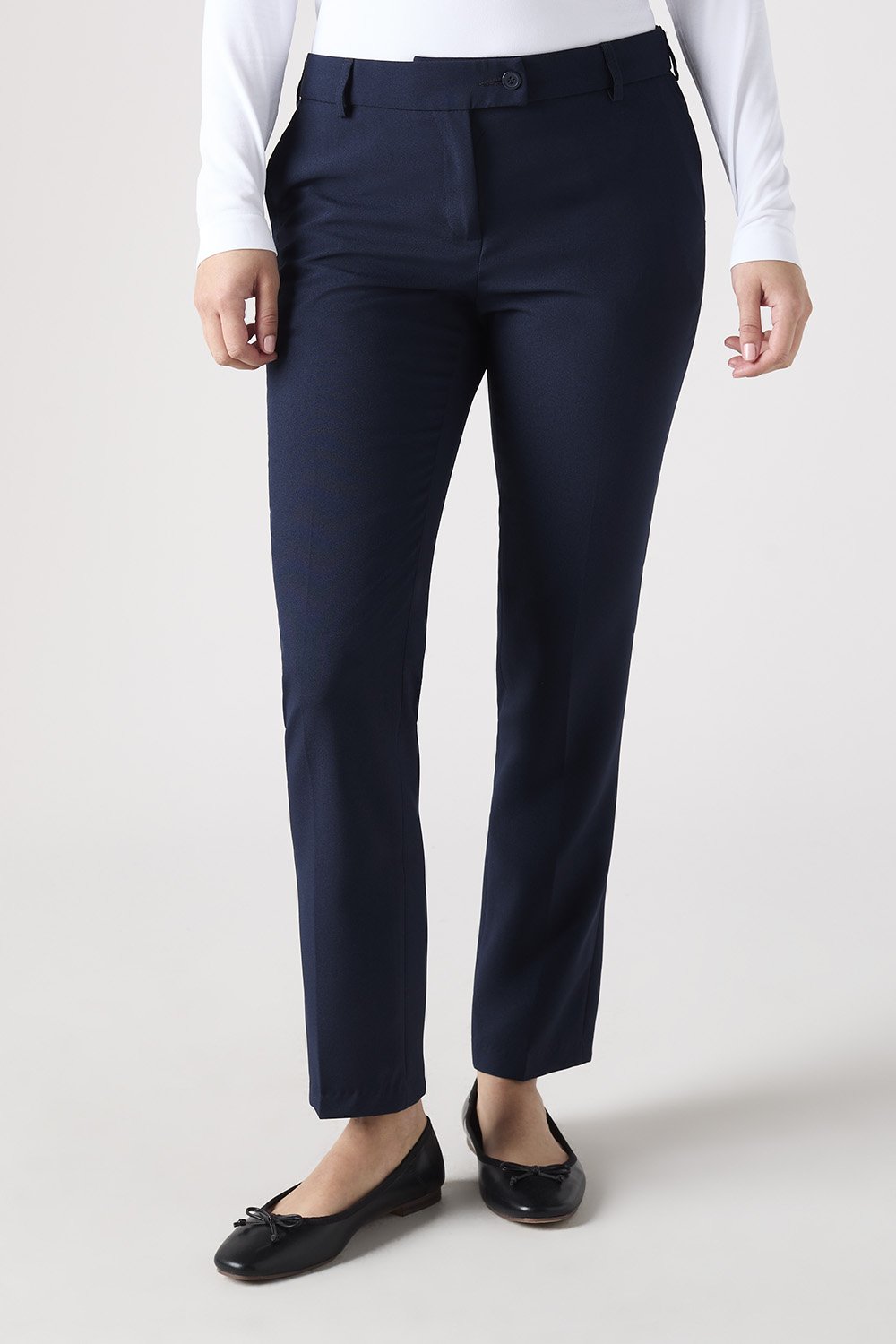 Naisten kapeat housut taskuilla. Housut eivät rypisty