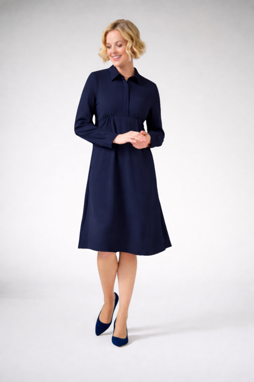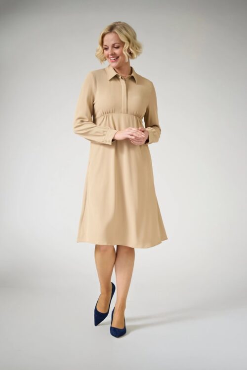 Krekla stila kleita ar īsām piedurknēm un kabatām