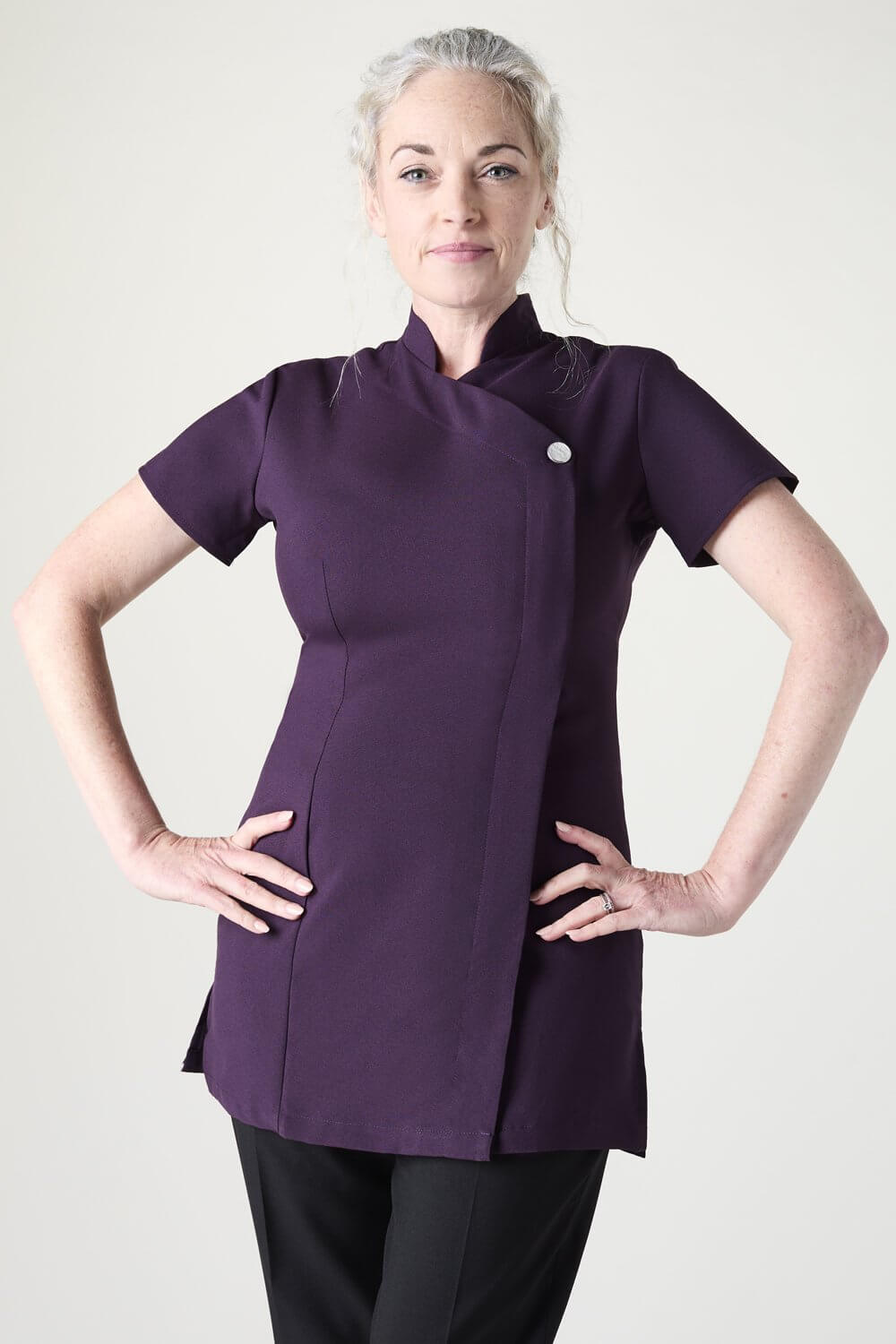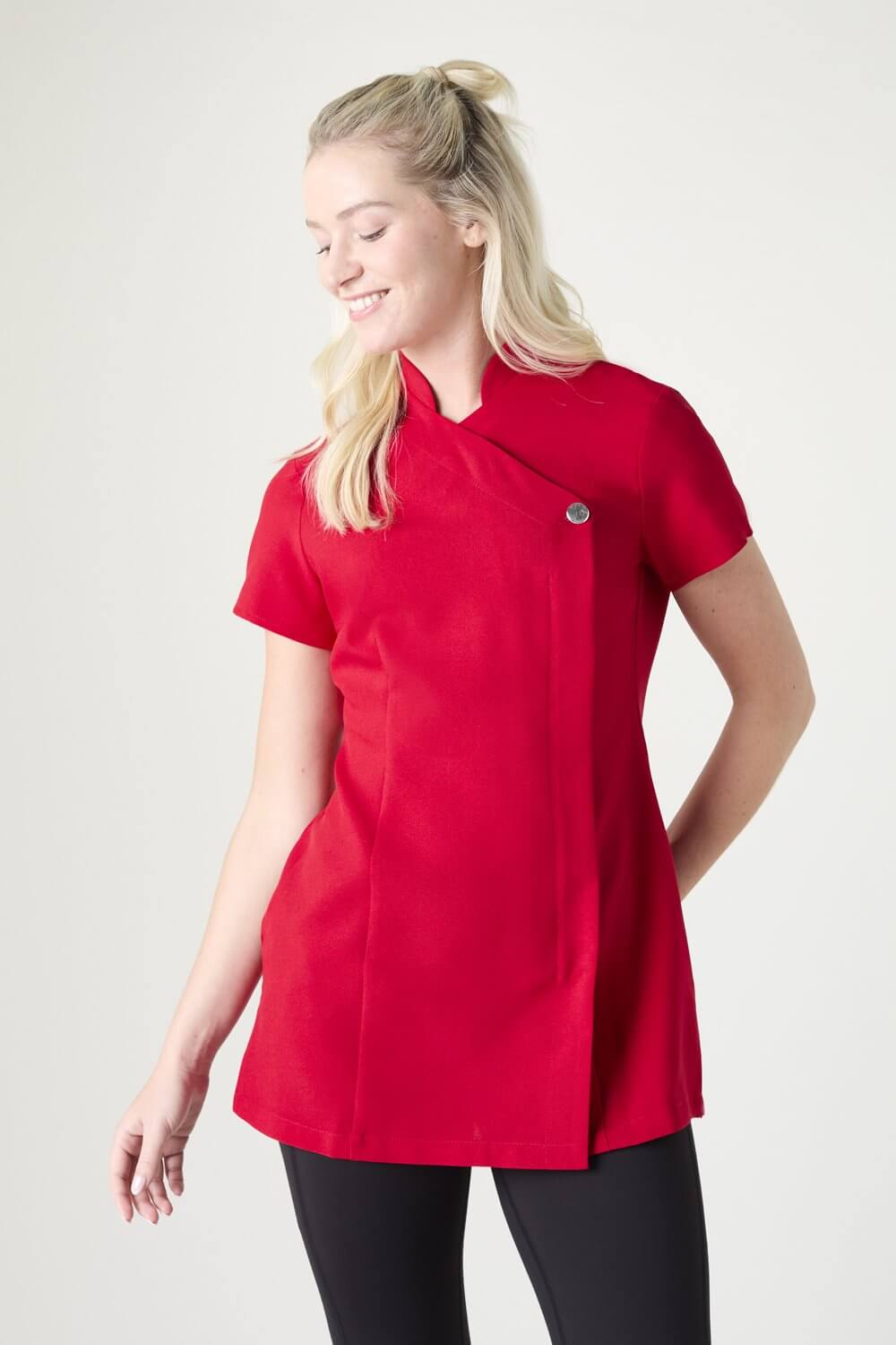 Viena no mūsu pieprasītākajiem dizainiem ir tunika ar vienu pogu, ko var variēt dažādās krāsās, veidojot unikālu tēlu savam uzņēmumam.