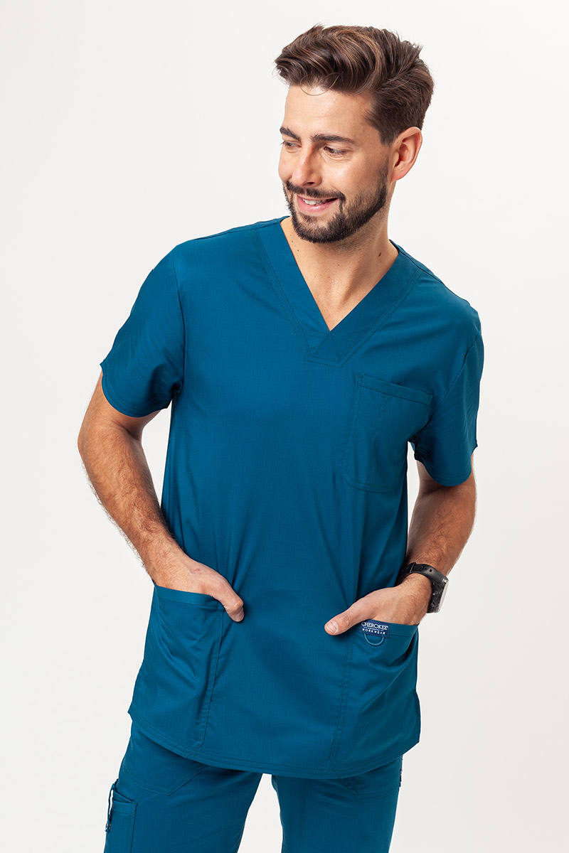 Cherokee Meeste V kaelusega meditsiini tuunika( Revolution kollektsioon) on ülimalt mugav ja hästi istuv ning funktsionaalse disainiga. Sobib meditsiiniasutuses ja puhastusteeninduses töötamiseks, samuti ka massööridele ja füsioterapeutidele.