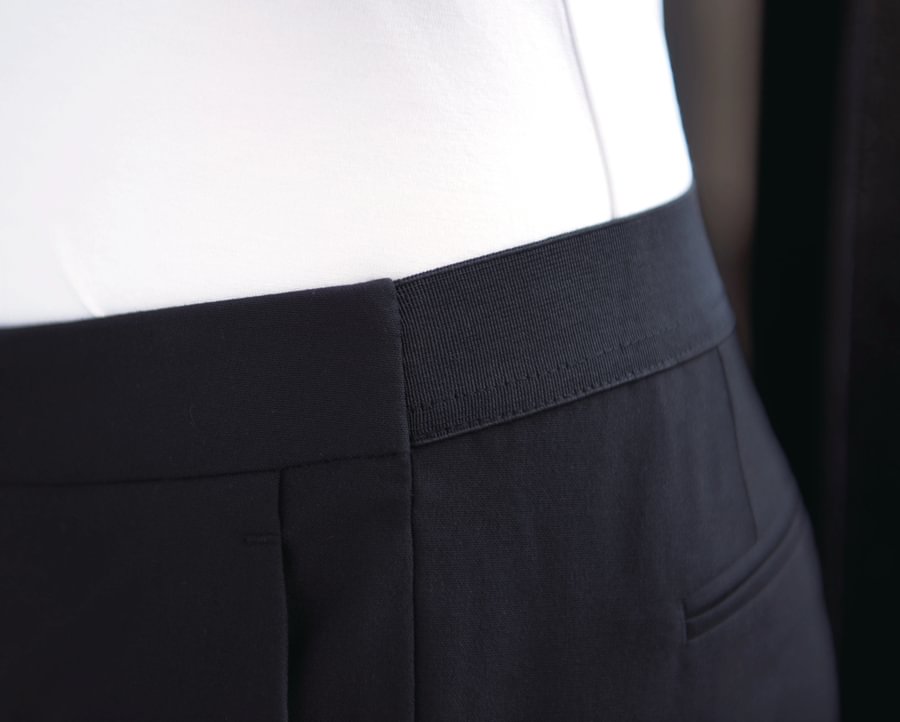 Stiilsed ja mugavad keskmisevöökohaga püksid on loodud elegantse välimuse ja igapäevase liikumisvabaduse tagamiseks. Pükste tagumine vööosa on elastse kummiga, mis tagab parema istuvuse ja suurema kandmismugavuse ka kiiretel tööpäevadel.