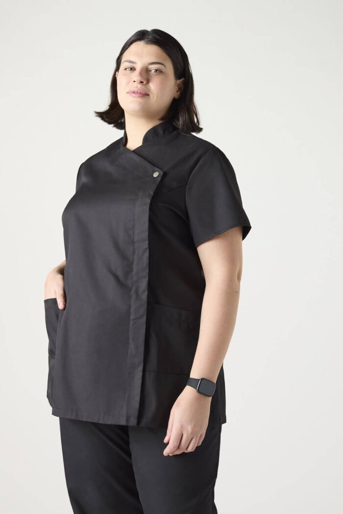 Vastupidav tuunika pressitud nööbi ja taskutega, sobib hästi tervishoiu asutustesse ja ilusalongidesse aga ka puhastusteenindajatele.