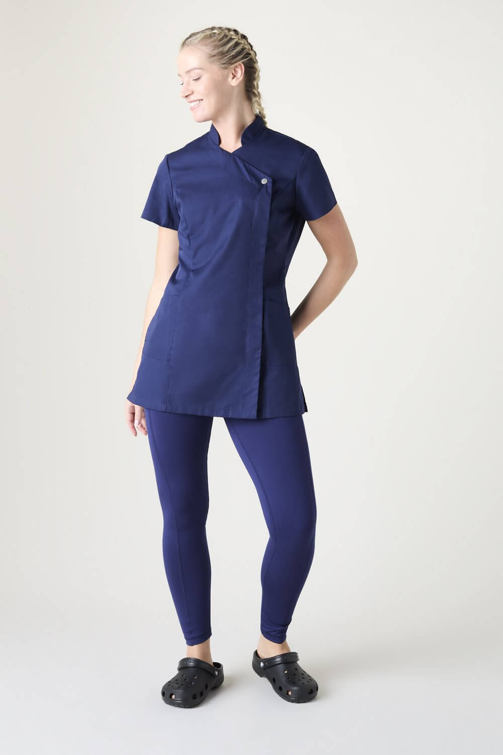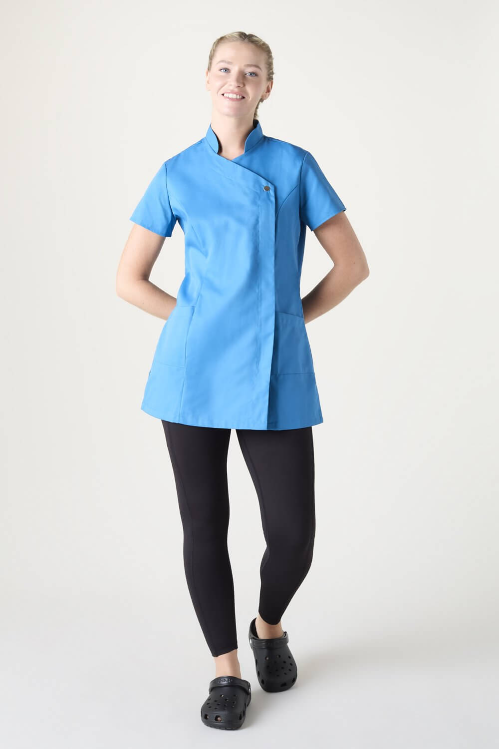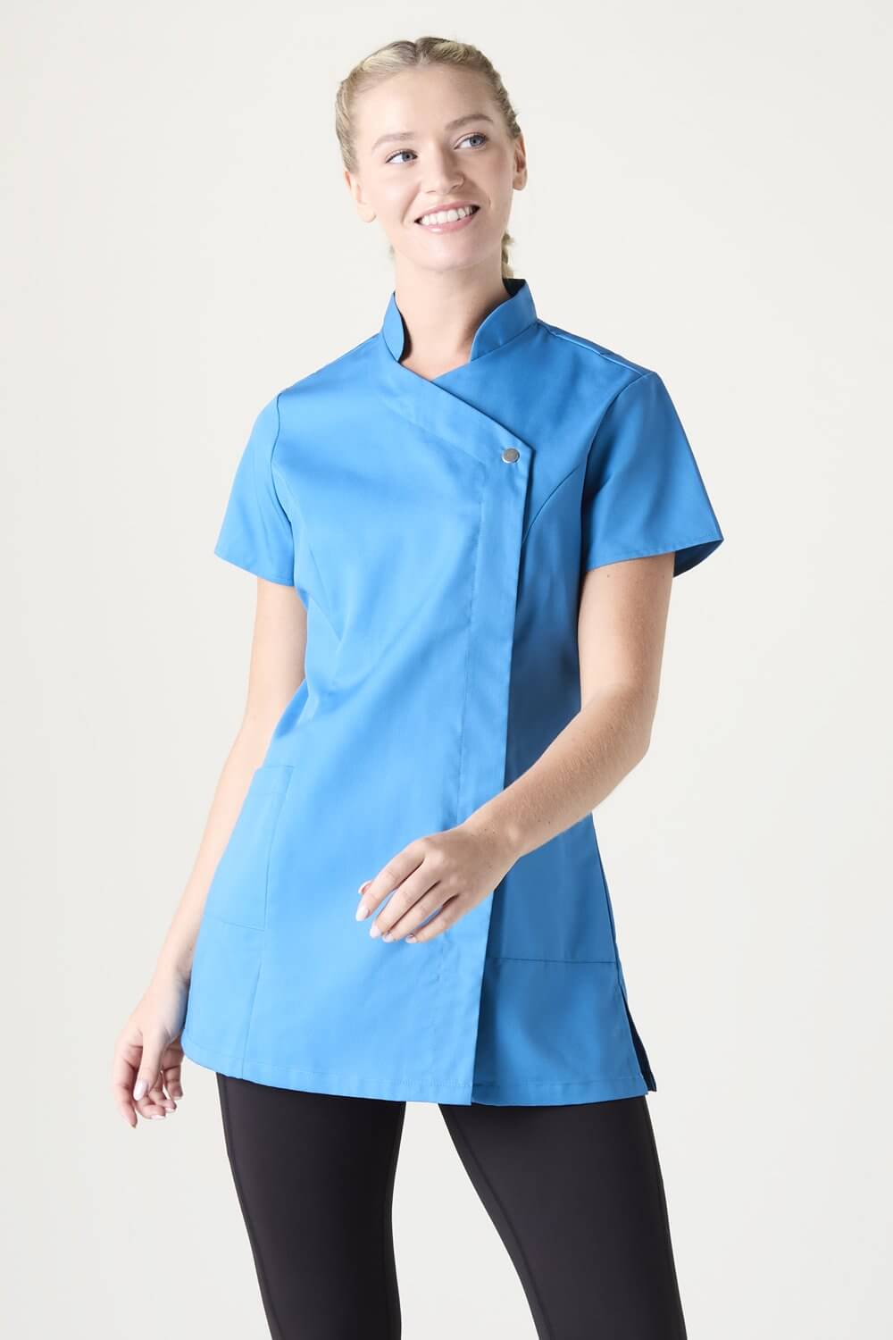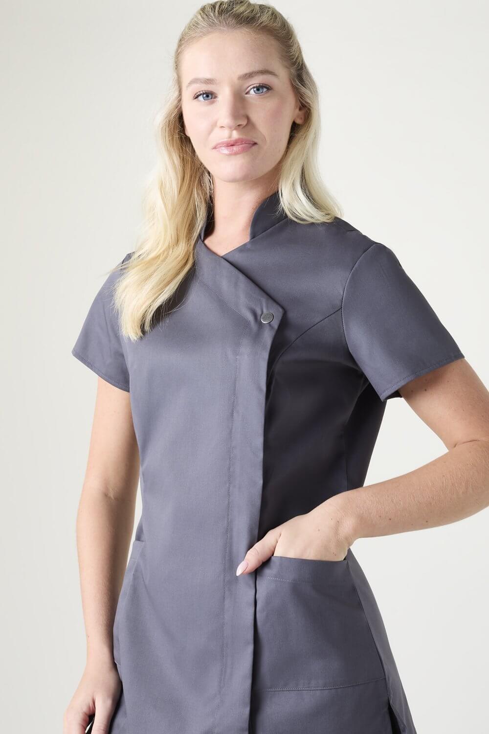 Vastupidav tuunika pressitud nööbi ja taskutega, sobib hästi tervishoiu asutustesse ja ilusalongidesse aga ka puhastusteenindajatele.