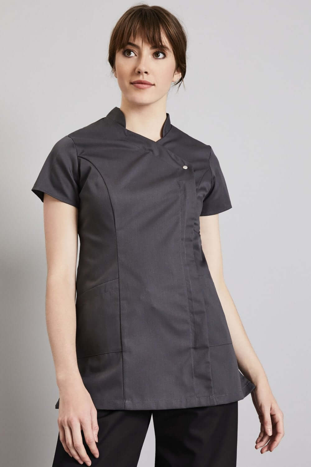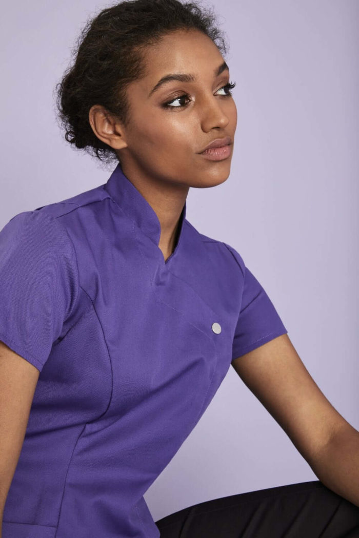 Vastupidav tuunika pressitud nööbi ja taskutega, sobib hästi tervishoiu asutustesse ja ilusalongidesse.