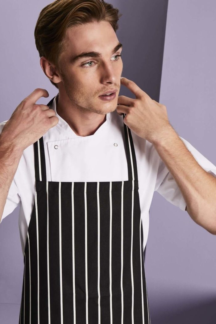 Triibuline põll, ilma taskuteta. Sobib nii kokkadele kui teenindajatele,